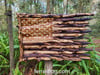 This is a very nice work of art with a sliding Union that is 7 inches tall 10 inches wide and just over 2 inches deep. Each star is carved by hand the colors are all natural. Each strip has detailed carving on it and a trim package that is absolutely stunning. This masterpiece is built to be passed down from one generation to the next. You may contact me at [email protected] to discuss a certain type of flag you would like handcrafted for a Veteran or anyone else you want to leave a lasting impression on.